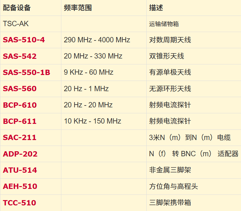 凭借足够的天线完成大多数常见测试,这套基本天线是电磁兼容测试的标准,每个天线都能很好地装入一个便携式手提箱中。该套件包括一个对数周期天线、折叠双锥天线、主动单极天线、环形天线以及两个电流探头,以及连接N(f)接收机所需的电缆和适配器。这套超棒的天线套件还配有带方位角和仰角云台的三脚架和三脚架携带箱。