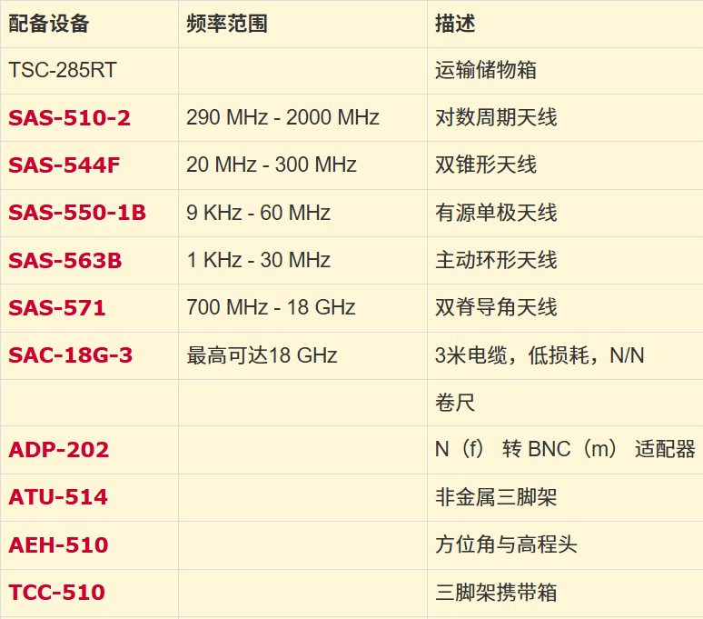 A.H. Systems AK-285R 和 AK-285T 天线套件包括进行屏蔽有效性测试所需的所有天线。每个组件在携带箱中都有专门的存放隔间,因此几