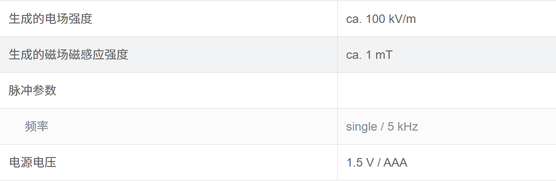 该发生器的外场源会生成 ESD/脉冲式类似脉冲形状的场,这些场仅限于几平方毫米的范围内。微型脉冲场发生器可通过手动引导,其产生