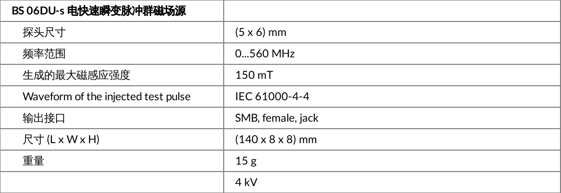 BS 06DB-s型磁场源用于生成电快速瞬变脉冲群磁场。通过一根高压电缆和电快速瞬变脉冲群发生器(IEC 61000-4-4),将电快速瞬变脉冲