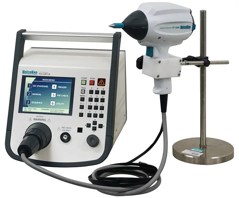 ESS-S3011A/ESS-B3011A静电放电模拟器 | 模拟来自带电人体或物体的ESD,满足 IEC61000-4-2、ISO 10605、GJB151B-CS112 等标准的测试要求,输出电压最大30KV。 | NOISEKEN |